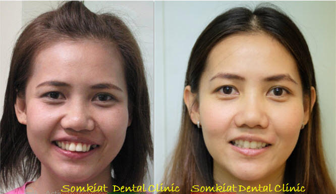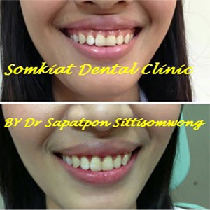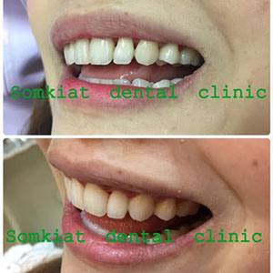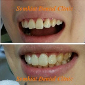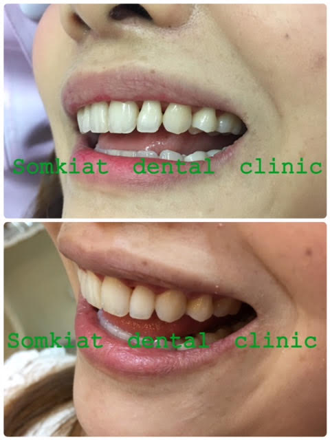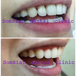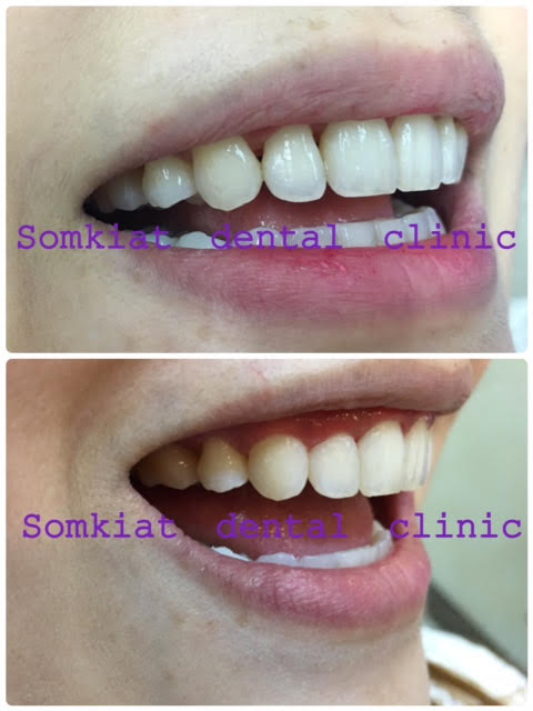 ฟันหน้าที่มีรอยอุดใหญ่ , รูปร่างไม่สวย สามารถแก้ไขโดยการทำวีเนียร์ปิดหน้าฟันไปทั้งซี่ วีเนียร์มี2 ชนิด คือ