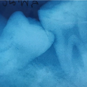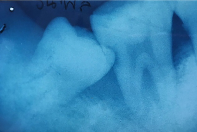 ฟันคุดที่งอกได้บางส่วน มักขึ้นชนในลักษณะมุดอยู่ใต้ฟันกรามซี่ถัดมา เศษอาหารมักติดจนฟันผุ และเหงือกอักเสบได้ง่าย กระดูกทีอยู่ระหว่างฟันคุดและฟันกรามซี่ที่สอง จะมีละลายตัวเกิดเป็นโพรงขึ้น ทำให้เป็นโรคปริทันต์อักเสบได้ง่ายๆ